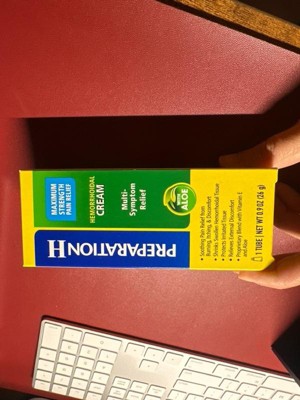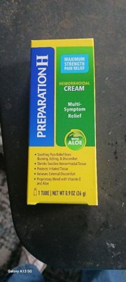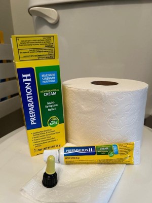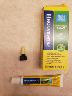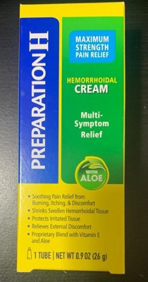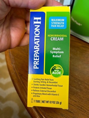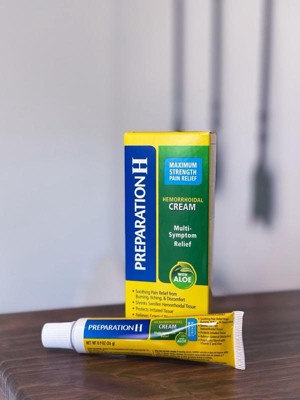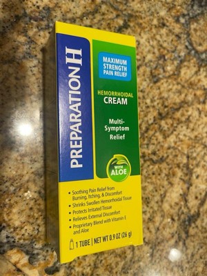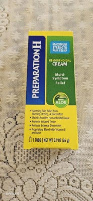 If you're asking what to do for hemorrhoids that disrupt your day, turn to Preparation H Multi-Symptom Pain Relief Cream. Among over the counter brands, it is the only hemorrhoidal cream with maximum strength pramoxine for multi-symptom hemorrhoid relief. Apply up to four times daily for rapid hemorrhoid pain relief that can help you get back to what you want or need to do. Hemorrhoids can flare-up at any time with a variety of symptoms including anus itching, burning, pain and discomfort. In fact, 75% of American men and women experience symptoms of hemorrhoids in their lifetime. While symptoms and number of flare-ups can vary from person to person, Preparation H Multi-Symptom Pain Relief Cream rapidly relieves external hemorrhoid discomfort. The smooth, cream formula is a unique blend with vitamin E, panthenol and soothing aloe to provide comfortable hemorrhoid treatment. And for better relief, use Preparation H Medicated Wipes to cool, soothe and cleanse before treating with Preparation H maximum strength cream. NET WT 1.8 OZ (51g) (1) Provoice survey dated from May 2015-August 2017 supports Preparation H is the #1 doctor recommend brand.