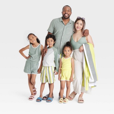 Stripes and solids are a timeless style staple—and pastels make them perfect for days spent poolside. This neutral-meets-natural collection of swimwear for the family keeps everyone comfortable and coordinated all season. Grab sunnies, slides & SPF for all-day fun in the sun.