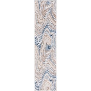 Elevate your space with our contemporary runner rug, measuring 2 feet 3 inches by 8 feet. This Turkish masterpiece features a soothing beige and blue palette, perfect for adding a touch of elegance to any hallway or entryway. Crafted with a blend of 75 percent polypropylene and 25 percent polyester, this power loomed rug boasts an abstract pattern that captures modern sophistication. The 3/8 inch height offers a comfortable surface underfoot while maintaining a sleek profile. Transform your decor with this versatile rug, where contemporary design meets artistic flair.