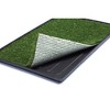 Prevue Pet Products Tinkle Turf system 500 for small dog breeds creates a designated potty area for your pet - perfect for when going outdoors is not an option! Tinkle Turf protects floors and furniture, makes an ideal training tool for young pups and is easily transportable when traveling with your pet, great for dog and owner alike! Ideal for travel, city living, busy schedules or anytime going outdoors is not an option, Tinkle Turf features a lightweight and portable tray that can be used both indoors and outdoors. The Tinkle Turf tray has been created with convenience in mind - designed with a low profile, it is easy for both small pups and older dogs to step onto, and a sturdy outer lip allows for easy pick-up while ridges in the tray base channel liquids away from the synthetic grass. Tinkle Turfs synthetic grass is certified lead-free and protected with antimicrobial odor control. Soft, realistic quality turf is 1/2" in height and constructed with a flow-through backing material, allowing liquid to drain into the tray base. A convenient dog potty that is easy to clean, Tinkle Turf 500 measures 22 7/8" long, 16 1/8" wide and 1 1/4" deep – ideal for Chihuahuas, Boston Terriers, Mini Poodles, Mini Schnauzers, Pomeranians and other dogs of a similar size. Do not use harsh detergents or cleaners for turf. Hand wash or brush with warm water and mild dish washing liquid, and rinse thoroughly. Let turf air dry fully before replacing in tray. Turf is not machine washable. Do not place turf in washing machine or dryer. Consider the purchase of a replacement turf to use while the primary turf is being cleaned/dried.