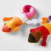 My dog loves the lesbian flag one! It has withstood his aggressive chewing of the squeaker and still, amazingly, keeps on squeaking. While the listing states both crinkle AND squeak, only the lesbian flag one has a squeaker. It’s a bummer because these are cute, little toys!