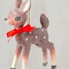 Bring a touch of nostalgic charm to your holiday décor with this vintage-inspired standing deer ornament from our Christmas Collection. Featuring a festive bright red bow, snowy textured coating, and subtle glitter accents, this classic deer design captures the magic of a traditional Christmas. Perfect for tabletops, mantels, or holiday displays, it adds whimsy and warmth to any space. Combine with other vintage-style pieces for a cohesive look or let it shine on its own as a standout decoration in your seasonal collection
