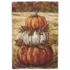 UNIQUE ARTWORK: Pumpkin stack design is replicated from the original artwork painted onto burlap canvas, giving the art a unique depth and texture