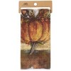 A microfiber kitchen towel from our Fall & Harvest Collection displaying an all-over design of an autumn scene of pumpkins stacked with fall foliage in between. The fall pumpkin design is replicated from original artwork painted onto burlap canvas, giving the art a unique depth and texture. Our Pumpkin Stack kitchen towel is conveniently machine-washable for easy cleaning. Seasonal kitchen towel is packaged on a cardboard hanger with a hole to easily display on a rack. A rustic fall kitchen accessory perfect for seasonal use.