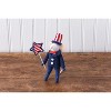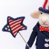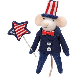 Add festive charm to your patriotic décor with the Primitives by Kathy Uncle Sam Mouse Critter. This felt mouse features a classic Uncle Sam-inspired outfit and holds a wand with a star-shaped American flag design. Designed with an attached loop for easy hanging, this decorative critter is perfect for Fourth of July displays, patriotic trees, wreaths, or seasonal wall décor.