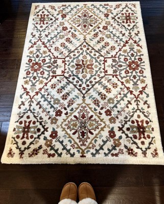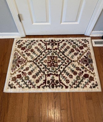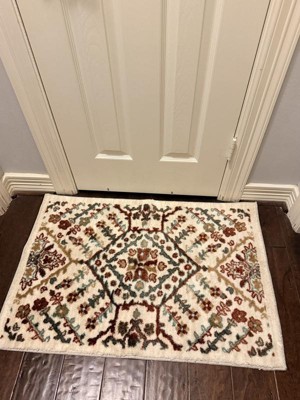 [This review was collected as part of a promotion.] Searched for a Persian style rug/bathroom mat and when I walked past this in the store my eyes were immediately drawn to it. It has everything you could want. The design is chic, it’s bold but not overwhelming and love that the colors help give a nice update. It helps tie in other accessories because of the color scheme. Not to mention it has a mat bottom so it doesn’t move around. I placed this at our guest bathroom sink and the door has no issues gliding over it. It’s a super soft material but not shaggy. 10/10 you won’t regret this purchase. Also note I used this for a bathroom but I would use this anywhere in my home.