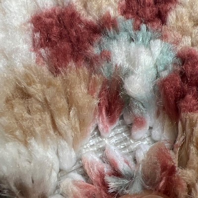 This is a soft and pretty rug. It does not feel like it will wear or wash well. The dye is only on the tips. Also, the color online is deceiving. What looks like a sage green, is actually more of a teal blue in person. Also, the area with the tan, is more camel colored rather than mustard yellowish.