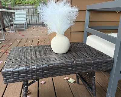 The Probe Hues Wicker Folding End Table is sturdy, lightweight, and easy to fold for storage. Its woven design adds a nice touch to outdoor spaces, and the compact size makes it perfect for patios or balconies.