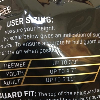 Youth size shinguards will fit kids up to 4'7" tall