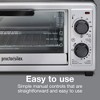 The Proctor Silex 4 Slice Toaster Oven Broiler is a versatile kitchen appliance that excels in toasting, baking, and broiling. Guests appreciate its compact size, making it ideal for small kitchens or break rooms. It heats up quickly and cooks food evenly, from toast to mini pizzas. The user-friendly design and easy cleanup enhance its appeal, making it a great addition for anyone looking to simplify meal preparation.