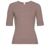 Indulge in understated sophistication with pearl accents and a flawless fit. * Crew neckline * Fitted silhouette * Elbow-length sleeves * Turn-up cuffs * Ribbed knit fabrication * Large back keyhole with pearl button closure * 70% Rayon, 30% Polyamide. Imported. * Machine wash cold with like colors, lay flat to dry