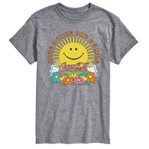 Men's - Coca-Cola - Have A Coke and Smile Retro Groovy Sun and Flowers Short Sleeve Graphic T-Shirt - 1 of 4