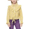 Girls Long Sleeve Ruffle Plaid Shirts Front Button Down Shirts for Girls Waist Knot Plaid Shirts - 1 of 4