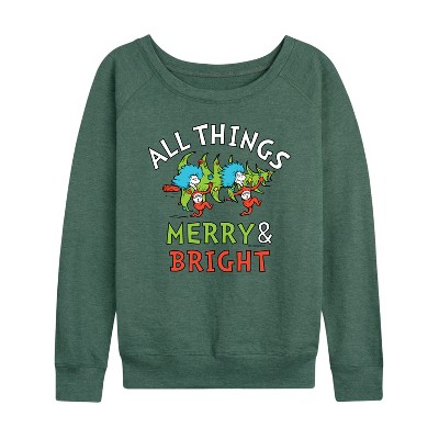 Women's Instant Message Not Naughty Just Crabby Christmas Lightweight French Terry Wide Neck Long Sleeve Graphic Shirt - Heather Juniper - 2 X-Large