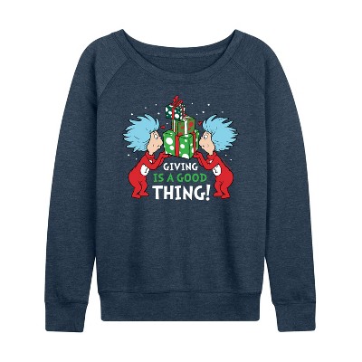 Women's Instant Message Yippee Ki Yay Athletic Christmas Lightweight French Terry Wide Neck Long Sleeve Graphic Shirt - Heather Indigo - Medium