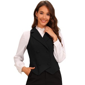The Allegra K Notched Lapel Waistcoat Vest for Women features a double-breasted front that exudes sophistication, while the V-neckline and notched lapel add a touch of classic tailoring. With a sleeveless design that allows for easy layering, this vest is a practical yet fashionable choice for creating a sleek workwear suit. Ideal for pairing with dress shirts, blouses, or trousers, this waistcoat vest can elevate your office attire with its elegant style.
