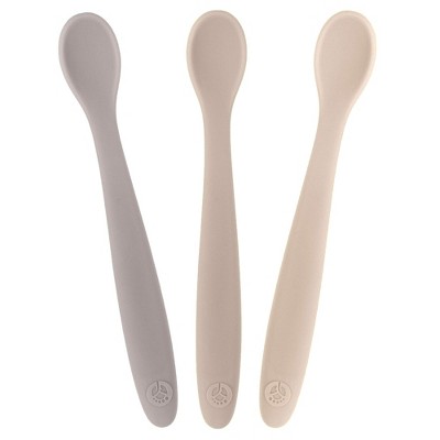WeeSprout Silicone Baby Spoons, First Stage Infant Feeding Utensils With Soft-Tip - Set of 3 (Bright Green, Blue, Grey)