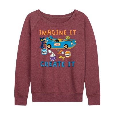 Women's Dr. Seuss Oh The Places I'll Go Balloon Lightweight French Terry Wide Neck Long Sleeve Graphic Shirt - Heather Maroon - Small