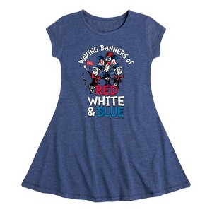 Dr. Seuss - Cat in the Hat Waving Banners of Red, White and Blue - Toddler And Youth Girls Fit And Flare Dress - Our collection of graphic apparel featuring officially licensed Dr. Seuss characters brings the whimsy and wonder of Seussville straight into your wardrobe. From the mischievous Cat in the Hat to the stinky Grinch, each design showcases iconic characters and scenes from Dr. Seuss's timeless stories.