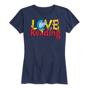 Women's Dr. Seuss The Cat In The Hat Book Cover Love Reading Short Sleeve Graphic T-Shirt - Navy - Large