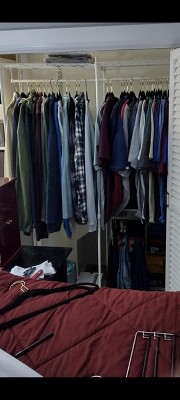 Box arrived with a hole and that shelf was bent. Instructions were horrible with drawn pictures that didn't explain directions of top or bottom of how each shelf was to be placed, the plastic clips to hold each pole slip and slide and don't seem to lock into place correctly. It sways when you move the cloths around so as for heavy duty no it's not, I want to say it's more for light child clothes not for adults clothes, it is roomy I'll give it that, but it's not very sturdy. But for the cheap price you get what you pay for.