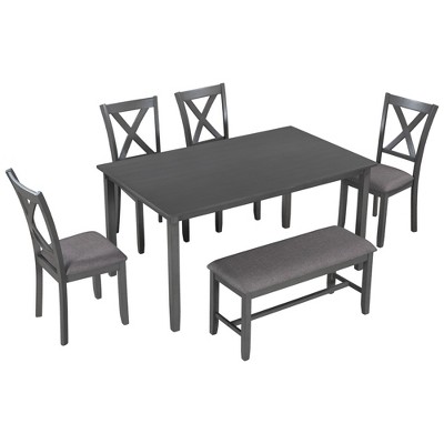 Whisen 6-Piece Wooden Rectangular Kitchen Dining Table Set with 4 Fabric Chairs and Bench - Espresso