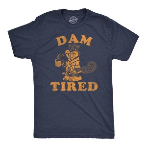 Mens Funny T Shirts Dam Tired Sarcastic Beaver Graphic Novelty Tee for Men - Crazy Dog Men's T Shirt for Animal Lovers - 1 of 4