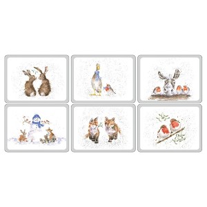 Add festive elegance to your holiday table with the Pimpernel Wrendale Designs Christmas Placemats, a set of 6 beautifully crafted mats that combine style, durability, and practicality. These decorative placemats are adorned with exclusive, whimsical holiday art prints, making them the ideal choice for adding a festive touch to your dining space. Placemats play a vital role in elevating the dining experience by adding both style and functionality to your table setting. These Decorative placemats not only enhance the aesthetics of your space with their stylish designs but also provide essential protection for your furniture. Our durable placemats shield your table from heat, spills, and scratches. Choosing the right table placemats ensures easy cleanup and longevity, making them a practical addition to any home. Crafted with a 5mm hardboard core, these durable placemats are designed to withstand the demands of daily use. The surface is sealed with a top-tier coating that makes them resistant to stains and heat up to 212°C, offering excellent protection for your table against hot dishes, spills, and scratches. Whether you’re hosting a large family dinner or a cozy holiday meal, these heat-resistant placemats ensure that your table remains safe from damage, while adding an extra layer of sophistication to your décor. Easy to clean with a damp sponge, these washable placemats are not only practical but also designed to last. Simply wipe them down after meals to maintain their vibrant look and feel. Designed with attention to detail and an eye for style, these Christmas placemats from Pimpernel are the perfect way to enhance your holiday dining experience.