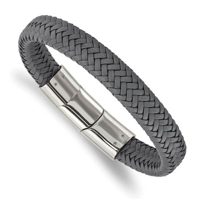 Unique Features - Simple and classic, this men's bracelet crafted from polished stainless steel with black, orange or gray leather features a braided design that is approximately 12mm (7/16 inch) in width. It closes with a magnetic clasp and is adjustable in length from 7.5 to 8 inches with the 1/2 inch removable extender.
