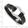Unique Features - Simple and classic, this men's bracelet crafted from stainless steel with genuine black leather features a polished shackle design with a loop clasp. The strap is approximately 9.8mm (3/8 inch) in width, the shackle is approximately 27mm (1 1/16 inch) in width and the length is 8.25 inches.