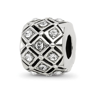 - Unique Features - Add a chapter to your bead collection with a theme simulated birthstone charm designed to reveal your personal story. This sterling silver with white crystals, cylinder style charm features a heart on the front and LOVE written in antiqued block letters on the back. It is approximately 11mm in width by 11mm in length and has a 4mm core that is interchangeable as well as compatible with other popular 3mm width bead style bracelets and necklaces. Will not fit Pandora bracelets.