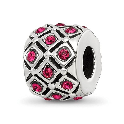 - Unique Features - Make your jewelry design twinkle and shine with this lattice designed simulated birthstone charm fashioned from sterling silver with purple crystals. It measures approximately 8mm in width by 11mm in length. All of our simulated birthstone charms feature a 4mm bead hole that is interchangeable as well as compatible with other popular 3mm width bead style bracelets and necklaces.