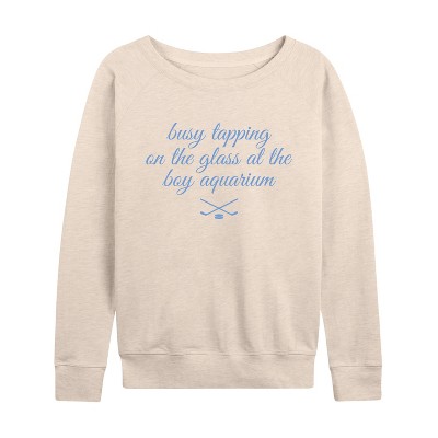 Women's Disney Mickey Light Blue Vintage Lightweight French Terry Wide Neck Long Sleeve Graphic Shirt - Birch - Small
