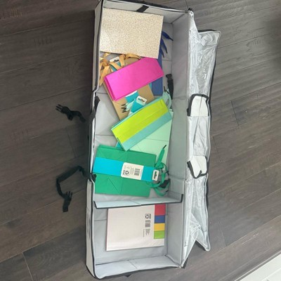 This is a great storage solution for wrapping paper and other gifting supplies. I’ve tried to fit wrapping paper rolls in storage bins before but they never fit right. This solution is the right size and you can adjust the divider if you have longer or shorter rolls of wrapping paper. There are plenty of pockets and places to put tape, bows, ribbon, etc. I love that it stores everything fairly flat and it has handles on 3 sides for easy maneuvering. I received an incentive to write this review.