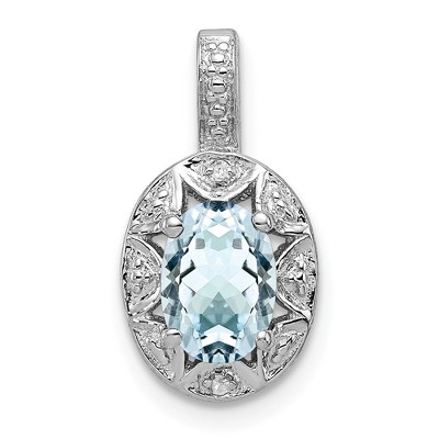 A classic inner scallop design with timeless style featuring a 7 x 5mm oval gemstone (multiple options available) and 2 white diamond accent stones set in tarnish resistant, rhodium-plated sterling silver. This small pendant is approximately 8mm (5/16 inch) in width by 16mm (5/8 inch) in length with the bail. The two genuine diamonds are H-I in color, I2-I3 in clarity and the total diamond weight is .01 carat. The color range varies on all gemstones so please allow for slight variations in shades. This item does not include a chain. Additional features include: rhodium-plated sterling silver design; 2 round diamonds, h-i color, i2-i3 clarity, 0.01 ctw; 1 oval 7 x 5mm gemstone, multiple options available; average weight is 1.00 grams.