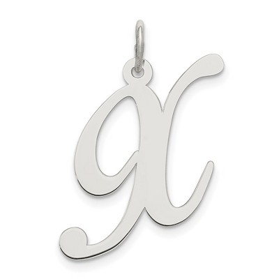 Indulge in a traditional initial charm that subtly enhances and personalizes your jewelry. Each fancy script letter is approximately 19mm (3/4 inch) in length, fashioned from sterling silver with a high polished finish and includes a standard jump ring. Made in the U.S.A. Chain not included. Additional features include: polished sterling silver; features a solid, thin flat design; approximate size 22mm wide x 19mm long; average weight is 0.56 grams.
