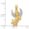 Celebrate and honor all special occasions with jewelry of religious significance! Our collection of spiritually inspired designs that show faith, hope and devotion are perfect for commemorating life's milestones. This two-tone angel pendant crafted in 14k yellow gold with white rhodium plating features a 2-dimensional open back design with a polished and diamond-cut finish. The approximate size is 13mm (1/2 inch) in width by 25mm (1 inch) in length with the bail. This item does not include a chain. Additional features include: crafted in 14k yellow gold & white rhodium; features a 2-dimensional open back design; approximate size is 13mm in width x 25mm in length; average weight is 1.08 grams.
