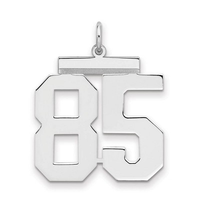 Celebrate your favorite sports player, lucky number or milestone date in your life with a prominent rhodium-plated sterling silver charm. Each polished number is approximately 18mm (11/16 inch) in length, which is finished with a 2mm top bar and a classic jump ring that will accommodate up to a 3mm chain. Made in the U.S.A. Chain not included. Additional features include: rhodium-plated sterling silver design; polished laser cut flat design; approximate length 20mm (number 18mm, top bar 2mm); average weight is 1.24 grams.