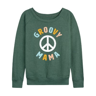 Women's Disney Happiest Mama Lightweight French Terry Wide Neck Long Sleeve Graphic Shirt - Heather Juniper - X-Large