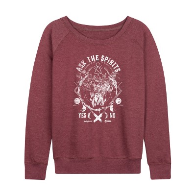 Women's Disney UFO Out Of This World Lightweight French Terry Wide Neck Long Sleeve Graphic Shirt - Heather Maroon - 2X