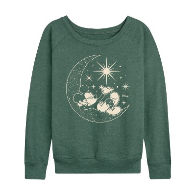 Women's Disney Retro Mickey Portrait Lightweight French Terry Wide Neck Long Sleeve Graphic Shirt - Heather Juniper - 2 X-Large