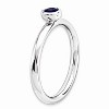 Unique Features - Created Sapphire, September's birthstone symbolizes truth, faithfulness and honesty bringing calmness and peace. This 2.5mm band fashioned from rhodium plated sterling silver is bezel set in a low profile mounting with a 4mm round gemstone that will add vibrant color to your finger. Guaranteed to fit together perfectly with all of the mix and match Stackable Expressions rings.