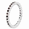 Unique Features - Garnet, January's birthstone symbolizes romance, love and passion; it is also believed to bring inspiration. This 2.5mm wide band fashioned from rhodium plated sterling silver is bezel set with 1. Mm round natural gemstones. The color range varies on natural gemstones so please allow for slight variations in shades. Guaranteed to fit together perfectly with all of the mix and match Stackable Expressions rings.