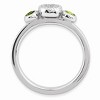 Unique Features - Peridot, August's birthstone is known to bring wealth and prosperity; it also symbolizes friendliness, purity and simplicity. Diamonds of course are said to be a girl's best friend. This 2.5mm polished band fashioned from rhodium plated sterling silver is prong set with 10 round diamonds flanked by two bezel set round peridot gems. The round center cluster mounting is approximately 6mm in width. Guaranteed to fit together perfectly with all of th...See description for more