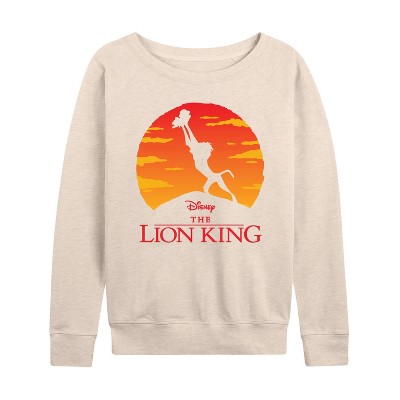 Women's Disney Simba Lightweight French Terry Wide Neck Long Sleeve Graphic Shirt - Birch - Medium