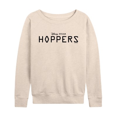 Women's Disney Mickey & Friends Lightweight French Terry Wide Neck Long Sleeve Graphic Shirt - Birch - Small