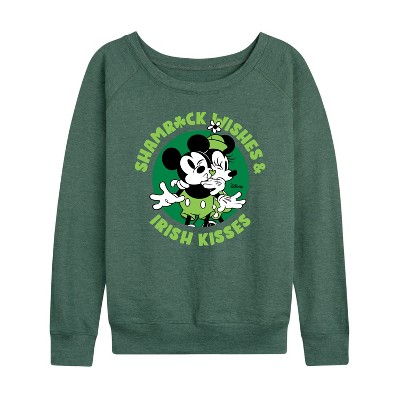 Disney - Shamrock Wishes Irish Kisses - Women's French Terry Long Sleeve Pullover - Add a touch of magic to your wardrobe with this graphic apparel featuring iconic Disney designs. Showcasing beloved characters and classic imagery, each piece combines nostalgic charm with modern style—perfect for Disney fans of all ages. Whether you're headed to the parks or just adding whimsy to your everyday look, these graphics bring the magic to life.