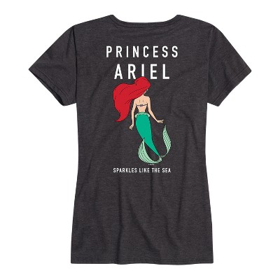 Disney Princess - Ariel And Flounder With Flowers - Women's Short Sleeve Graphic T-Shirt - Live the fairytale every day with Disney Princess graphic apparel. Featuring beloved heroines like Cinderella, Ariel, Belle, and Moana, each design celebrates the timeless magic, courage, and individuality of Disney’s iconic princesses. Perfect for dreamers of all ages, these pieces bring a touch of royal charm and inspiration to your everyday style.