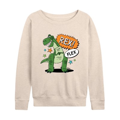 Toy Story - Rex Flex - Women's Lightweight French Terry Long Sleeve Shirt - Add a touch of magic to your wardrobe with this graphic apparel featuring iconic Disney designs. Showcasing beloved characters and classic imagery, each piece combines nostalgic charm with modern style—perfect for Disney fans of all ages. Whether you're headed to the parks or just adding whimsy to your everyday look, these graphics bring the magic to life.