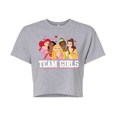 Disney - Princesses Stick Together - Juniors Cropped Cotton Blend T-Shirt - Add a touch of magic to your wardrobe with this graphic apparel featuring iconic Disney designs. Showcasing beloved characters and classic imagery, each piece combines nostalgic charm with modern style—perfect for Disney fans of all ages. Whether you're headed to the parks or just adding whimsy to your everyday look, these graphics bring the magic to life.